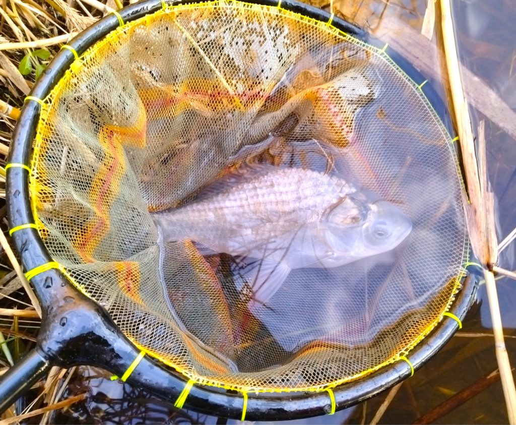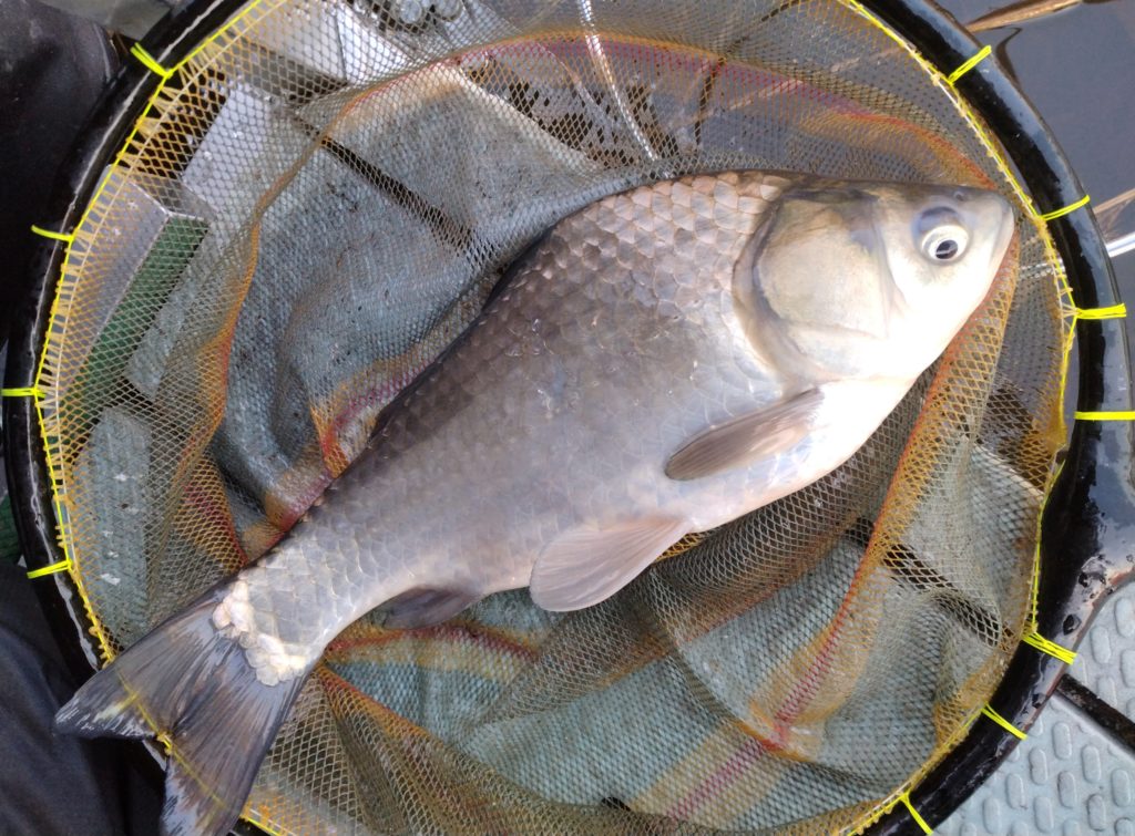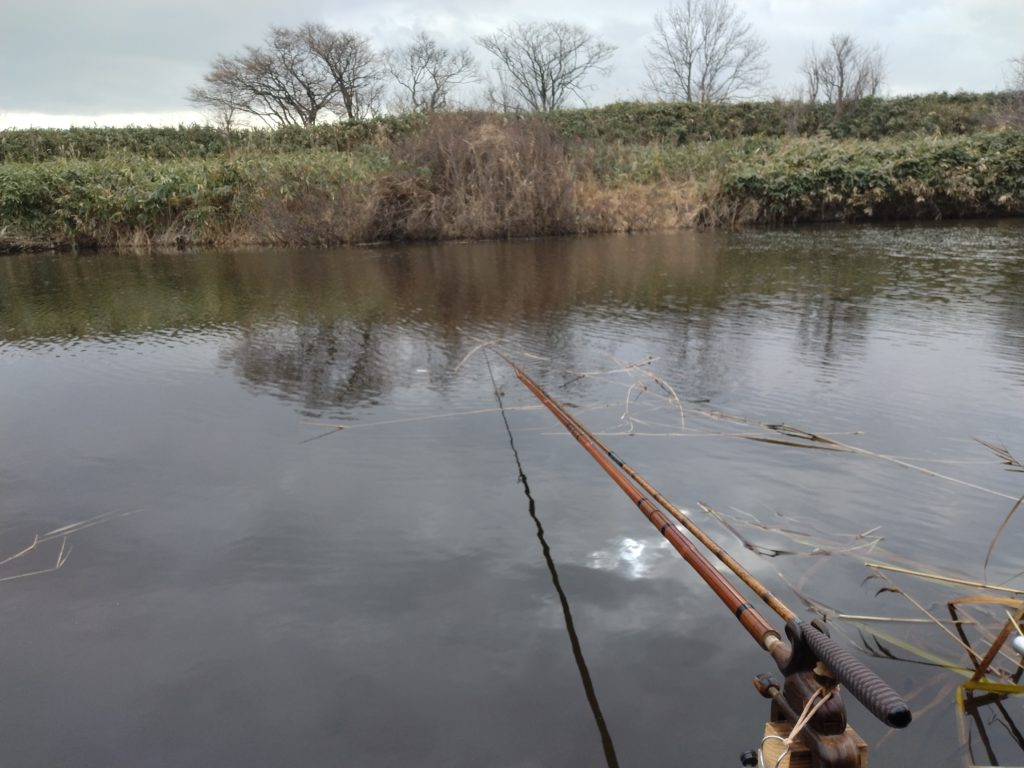 霜月も終わりになりますが、今季の結氷は遅くなりそうな・・。釣行日は、南寄りの風が西寄りに変わる予報。最初の目的地に着くと予想以上に風が強く雨も少々。初冬に釣行したことがないので、試してみたい反面、条件的には厳しそうで次の候補地へ。沼の畔へおりると、風も大きく影響なさそうで準備にとりかかりました。 水温が低下していることもあり、エサを打ち始めてしばらくウキへの反応はまったくなく、1時間程経過してようやく1枚目が釣れて一安心。9寸程がタモに収まりました。